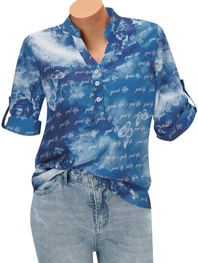 Women's Fashionable Summer Printed Notched V Neck Short Sleeve Blouse-33%