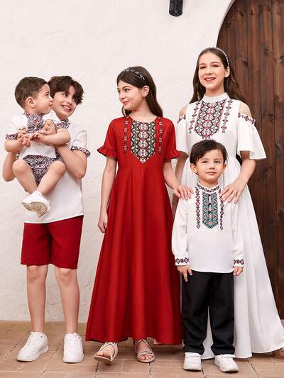 Teen Girls Round Neck Bell Sleeve Cover Up Top & Skirt Set Mommy And Me Matching Outfits (2 Pieces Are Sold Separately)-47%