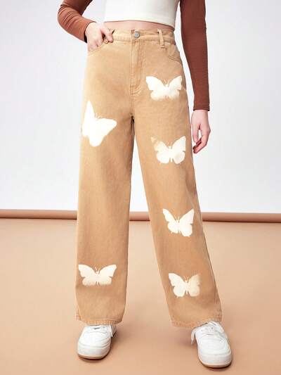 Teen Girls' Butterfly Pattern Casual Straight Leg Jeans-48%