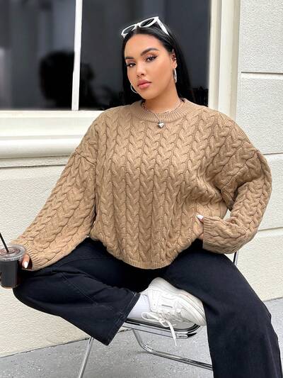 Plus Cable Knit Drop Shoulder Sweater-60%