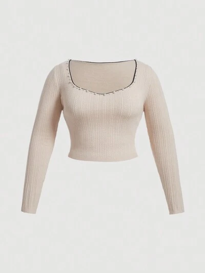 Plus Pearls Beaded Scoop Neck Sweater-60%