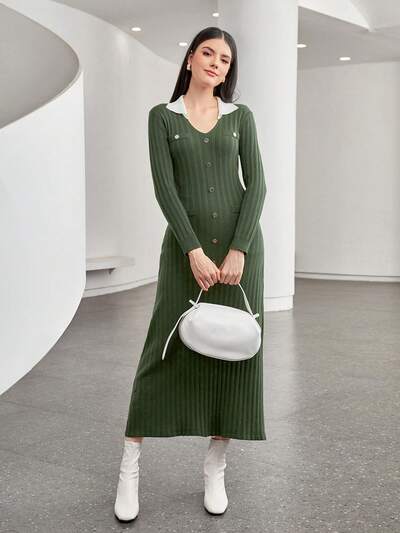 Women's Slim Fit Stand Collar Knitted Sweater Dress Fall Cloth For Women-60%