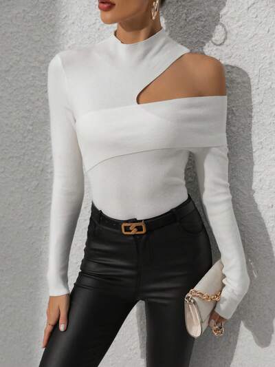 Cut Out Mock Neck Ribbed Knit Pullover Fall Winter Sweater-60%