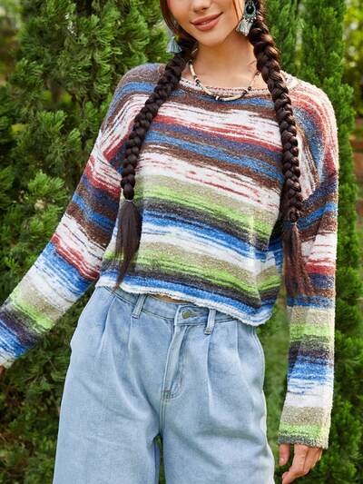 Women's Stripe Drop Shoulder Cropped Sweater-60%