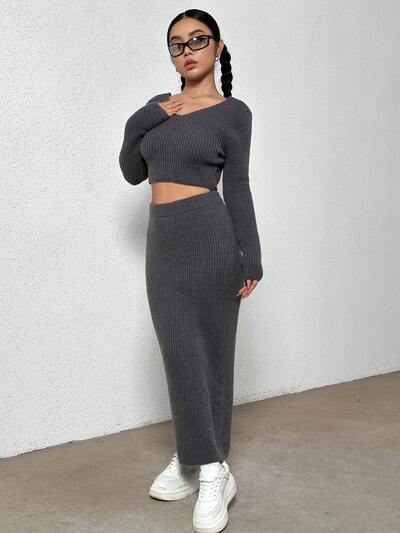 Drop Shoulder Cardigan & Split Hem Sweater Dress