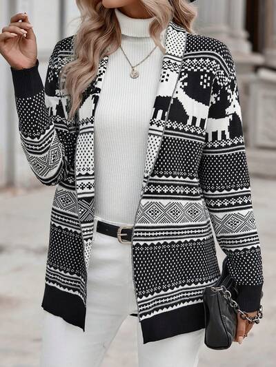 Geo & Elk Pattern Drop Shoulder Cardigan-45%