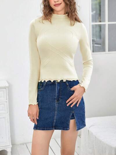 Solid Cable Knit Asymmetrical Hem Crop Knit Pullover Fall Winter Sweater-35%