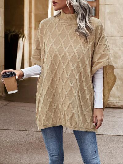 1pc Mock Neck Batwing Sleeve Poncho Knit Pullover Fall Winter Sweater-54%
