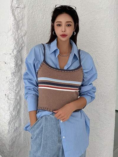 Striped Pattern Cami Knit Top Without Blouse,Fall Clothes-60%
