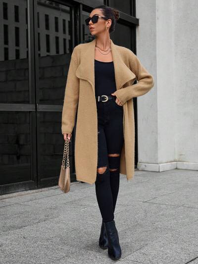 Waterfall Collar Drop Shoulder Belted Cardigan-60%