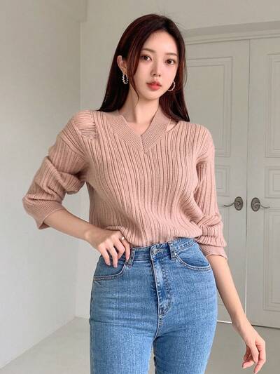 Solid Drop Shoulder Pointelle Knit Sweater-60%