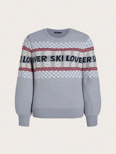 Argyle Pattern Crop Knit Pullover Fall Winter Sweater-60%