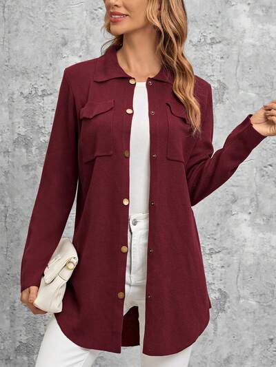 Flap Pocket Button Front Cardigan In Fall/Winter-60%