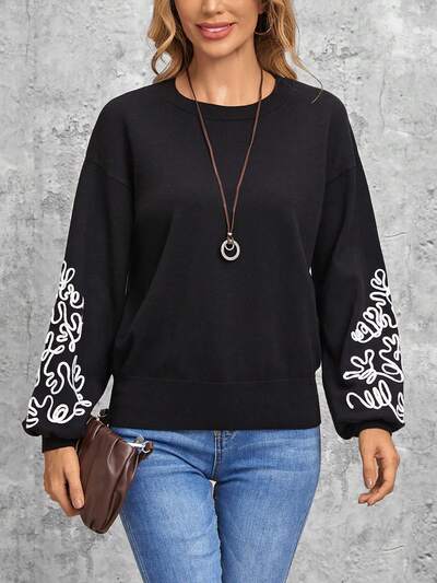 Floral Pattern Drop Shoulder Sweater-35%