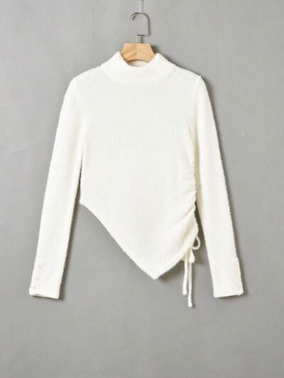 Mock Neck Drawstring Side Hanky Hem Sweater-60%
