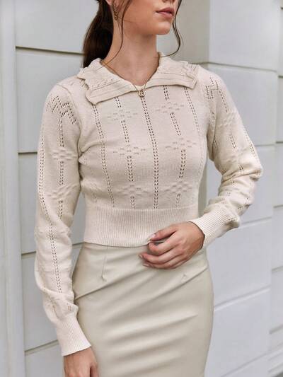 Solid Pointelle Knit Pullover Fall Winter Sweater-60%