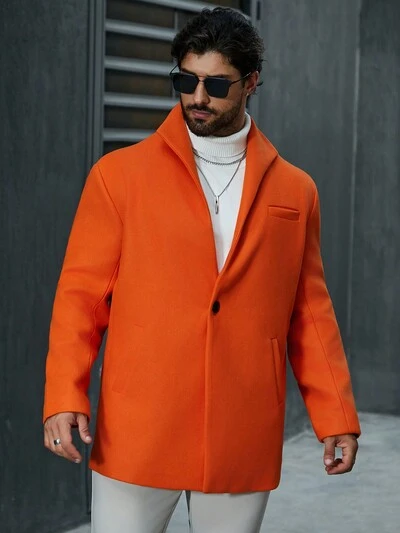 Men's Plus Size Solid Color Single-breasted Woolen Coat