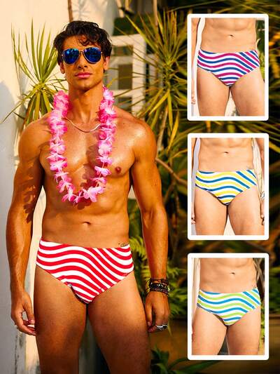 Men'S 3pcs Solid Color Swim Shorts With Drawstring Waist-26%