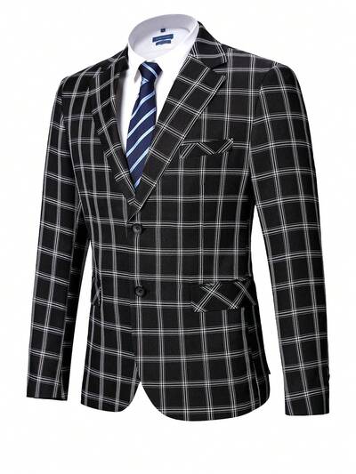 1pc Men's Plaid Notched Collar Single Breasted Suit-60%
