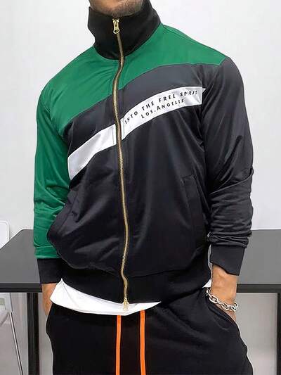 Aesthetic Post--Men Letter Graphic Colorblock Zip Up Jacket-60%