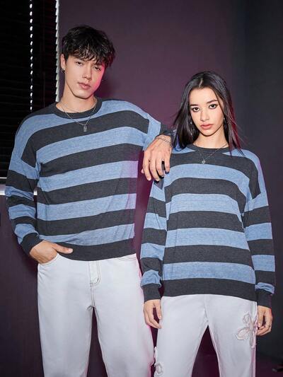 1pc Striped Pattern Drop Shoulder Sweater-60%