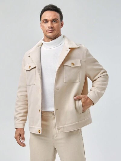 Loose Fit Men Plus Size Flap Pocket Long Sleeve Casual Overcoat, For Fall Winter-60%