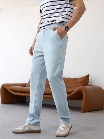 Men's Solid Color Straight Leg Suit Pants With Pockets, For Daily & Commute-60%