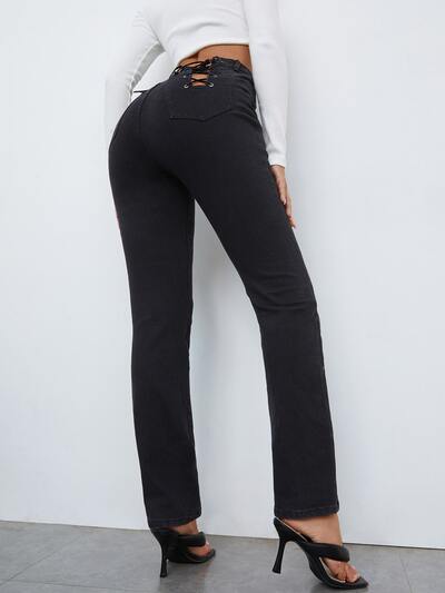 High Waisted Lace Up Back Jeans-65%