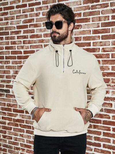 Men'S Plus Size Letter Embroidered Drawstring Sweatshirt-60%
