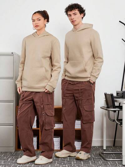 1pc Solid Color Drawstring Waist Cargo Pants-65%