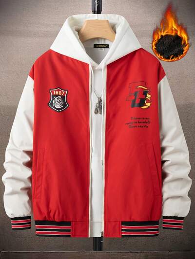 Loose Fit Men's Thick Jacket With Letter Print-60%
