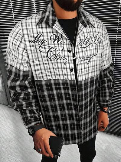 Men Plaid & Letter Graphic Shirt-60%