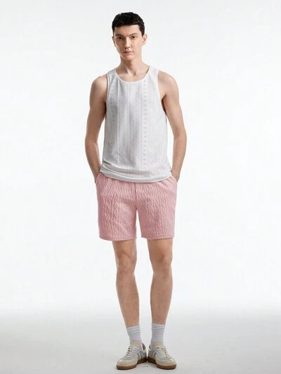 Men's Plus Size Textured Short Sleeve Shirt And Shorts-23%