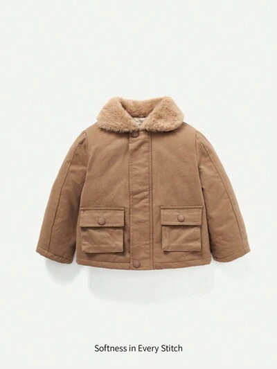 Baby Boy Borg Collar Flap Pocket Padded Coat-65%