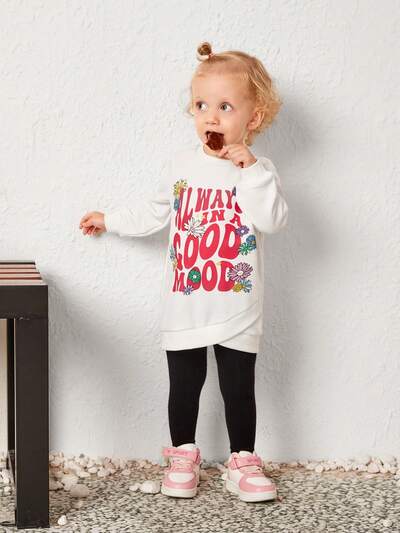 Baby Girl Floral & Slogan Graphic Pullover-60%