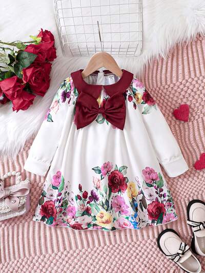 Baby Girl Floral Print Bow Front Dress-65%
