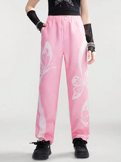 Teen Girl Pink Butterfly Y2k Fashionable Casual Long Pants-41%