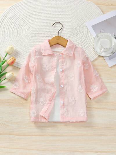 Baby Girl Elegant Embroidered Long Lightweight Jacket For Spring/Summer, Casual & Fun Fashionable-65%