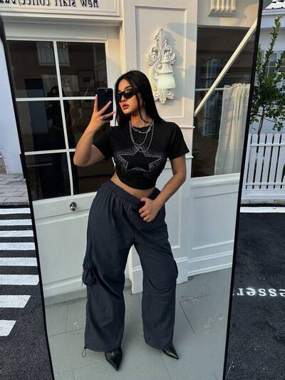 Plus Size Women Summer Loose T-Shirt With Hollow Sleeves And Beaded Details-43%