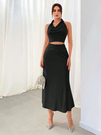 Women's Valentine's Day Halter Neck Top Top & Mermaid Hem Skirt Set, Sexy And Elegant, Perfect For Daily Wear And Dating-24%