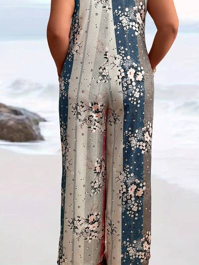 Plus Size Casual Floral Printed Jumpsuit With Straight Leg For Summer-21%
