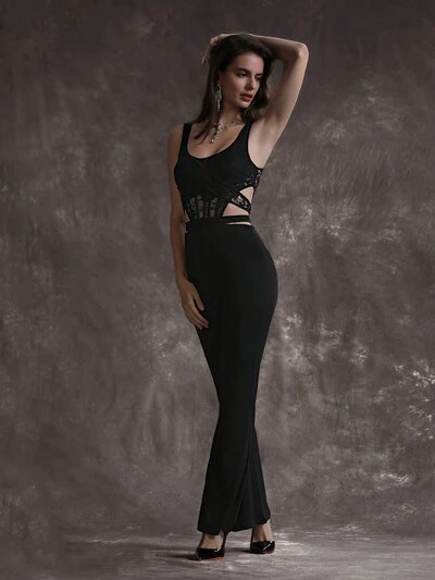 Elegant And Gorgeous Sequined Patchwork Dress-60%