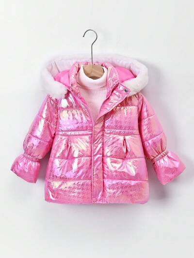 Young Girl Metallic Hooded Padded Coat Without Sweater-60%