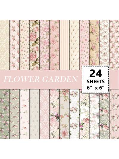24pcs 6'x6' Pink Roses Flower Scrapbook Paper, Spring Vintage Floral Craft Prints, Vision Board Diy Crafts Kit, For Junk Journaling And Valentine's Day Party Decoration Supplies,School Supplies,Back To School