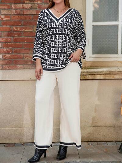 Plus Size Women's Printed Top & Drawstring Wide Leg Pants Two-piece Set-29%