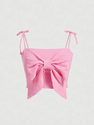 Plus Casual Pink 3D Bowknot Tank Top-35%