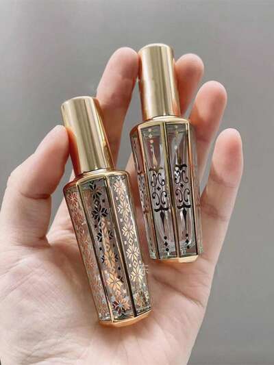 1pc 15ml Glass Refillable Perfume Spray Bottle With Golden Floral Pattern, Portable