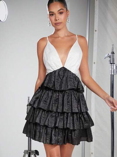 Colorblock Layered Ruffle Hem Dress-23%
