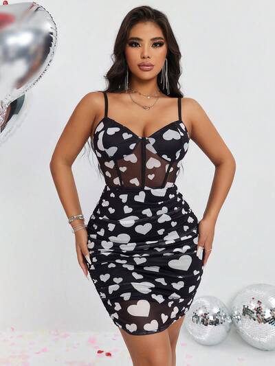 Elegant Floral Print Ruffle Hem Bodycon Cami Mini Dress