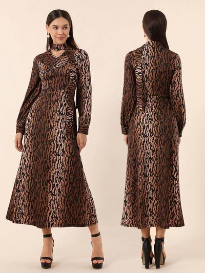 Puff Long Sleeve Fuzzy Fabric Dress With Stand Collar And Slim Fit-60%